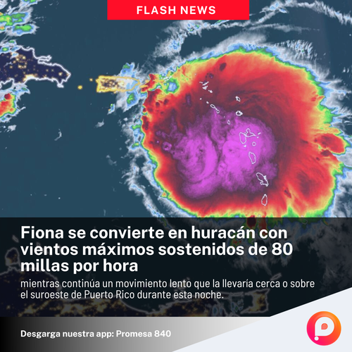 Los vientos sostenidos del huracán Fiona han aumentado a 85 millas por hora (mph), confirmó el Centro Nacional de Huracanes (NHC, en inglés) en su boletín intermedio de las 2:00 p.m. El fenómeno, se convirtió esta mañana en un huracán categoría 1 en la escala Saffir-Simpson y pasará en las próximas horas cerca o sobre del suroeste de Puerto Rico.
